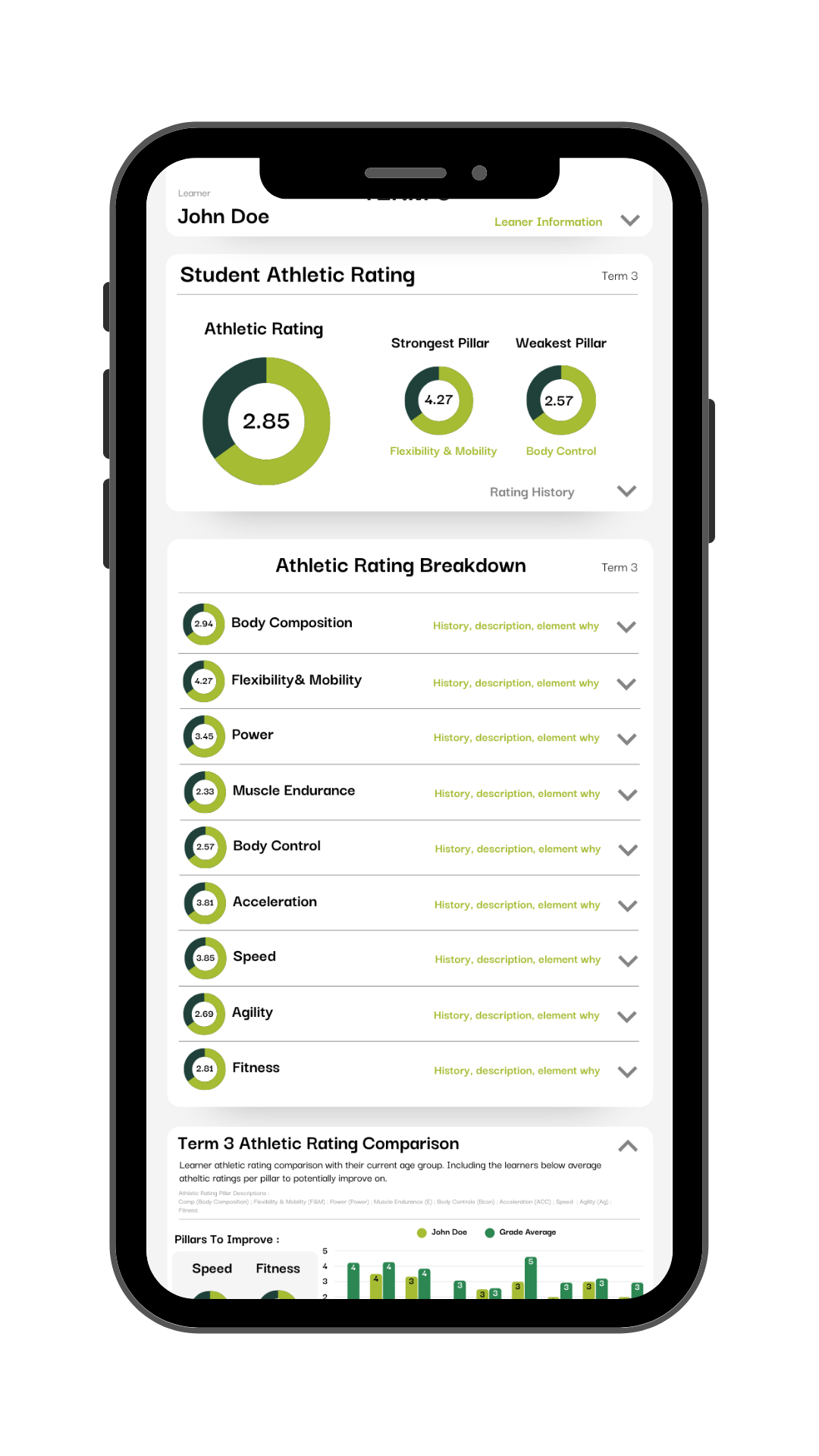 The Skilltracer Atheltic Rating (AR) measures each student’s physical make up in digital format
